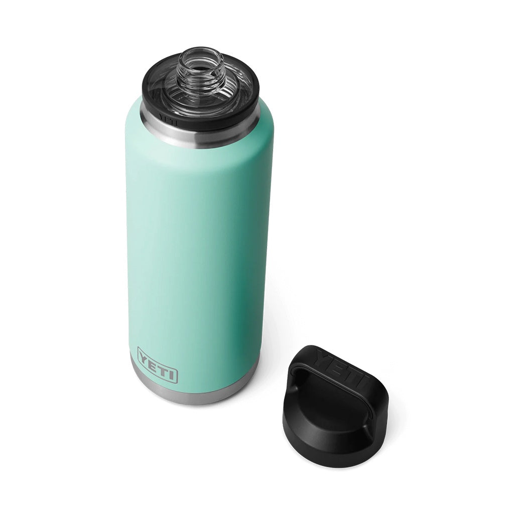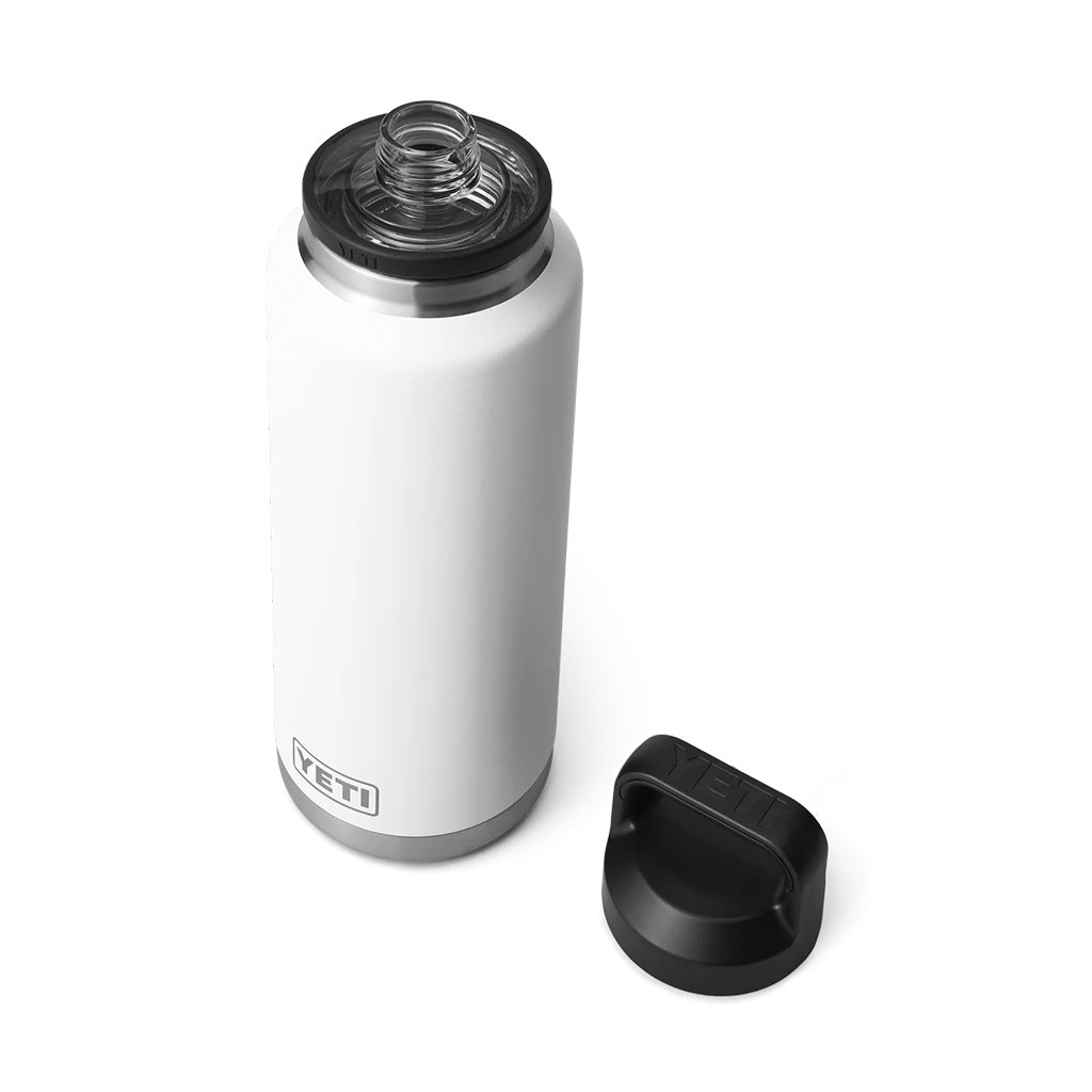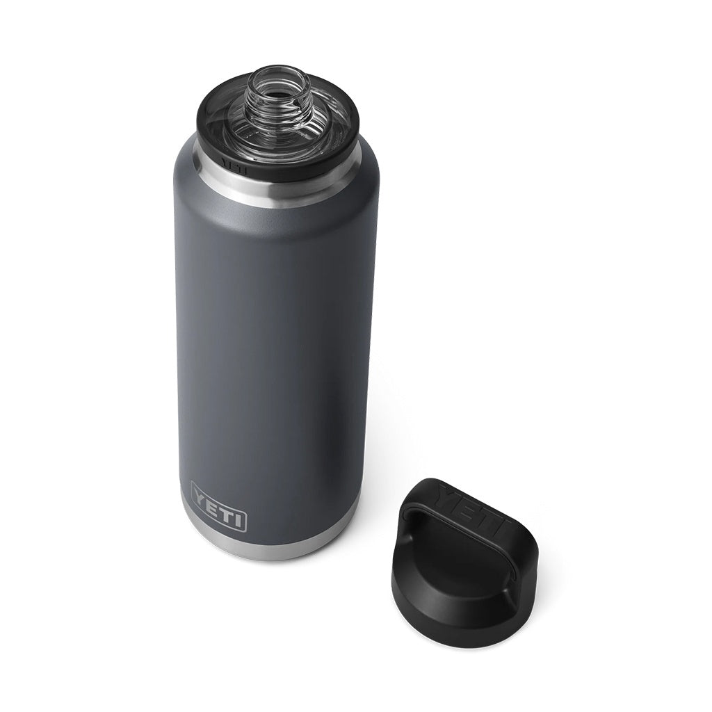 Meet the Yeti Rambler® / 1.4 Litre Insulated Bottle with Chug Cap, the oversized bottle built to follow you to the middle of nowhere and keep you hydrated along the way. It's not too big to slow you down, but big enough to hold ample H2O from early morning statrts to to that worth the hike sunset.