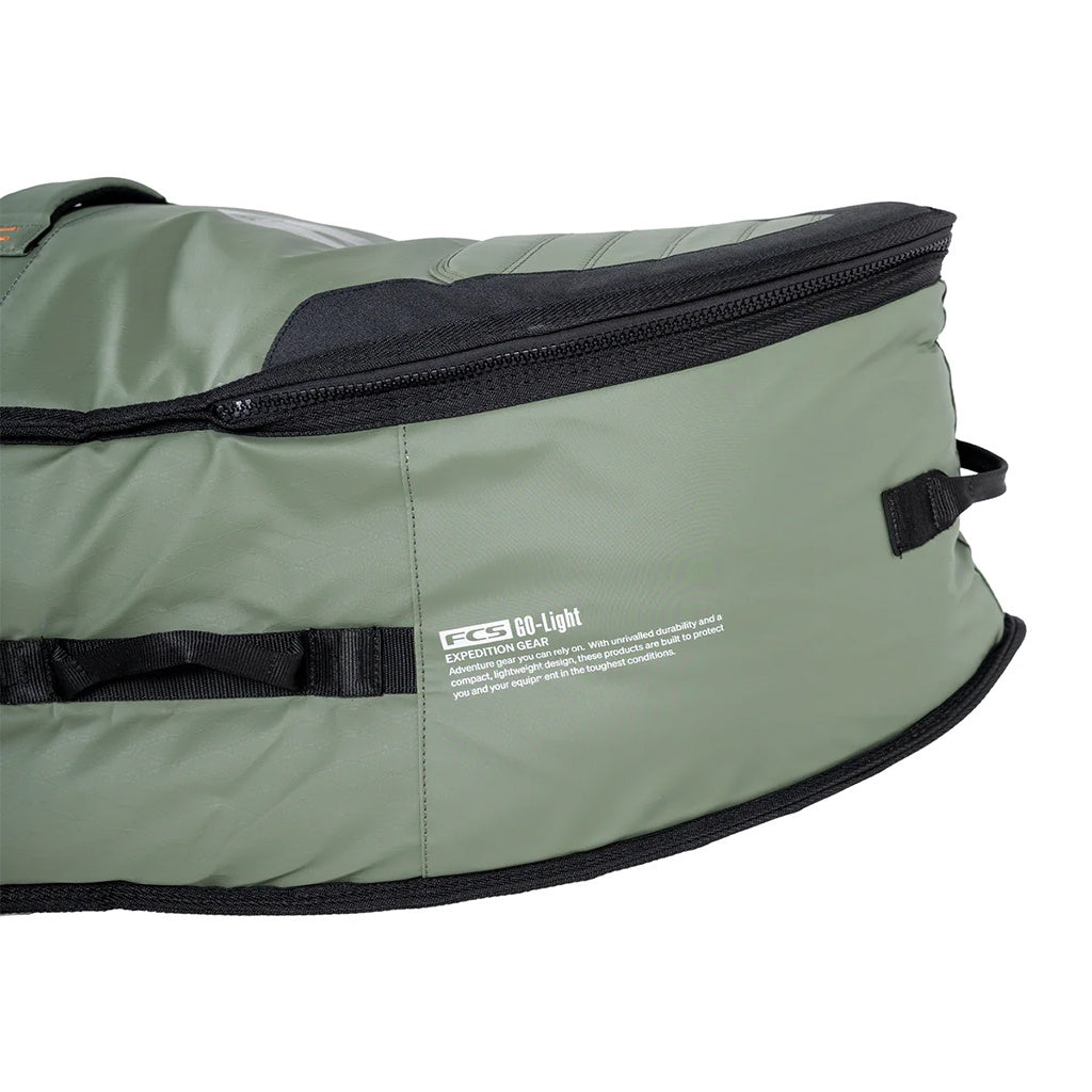 The FCS GO-Light Travel 4 Shortboard / Fish Quad Wheelie Surfboard Cover is perfect for international missions or weekend road trips to remote locations.