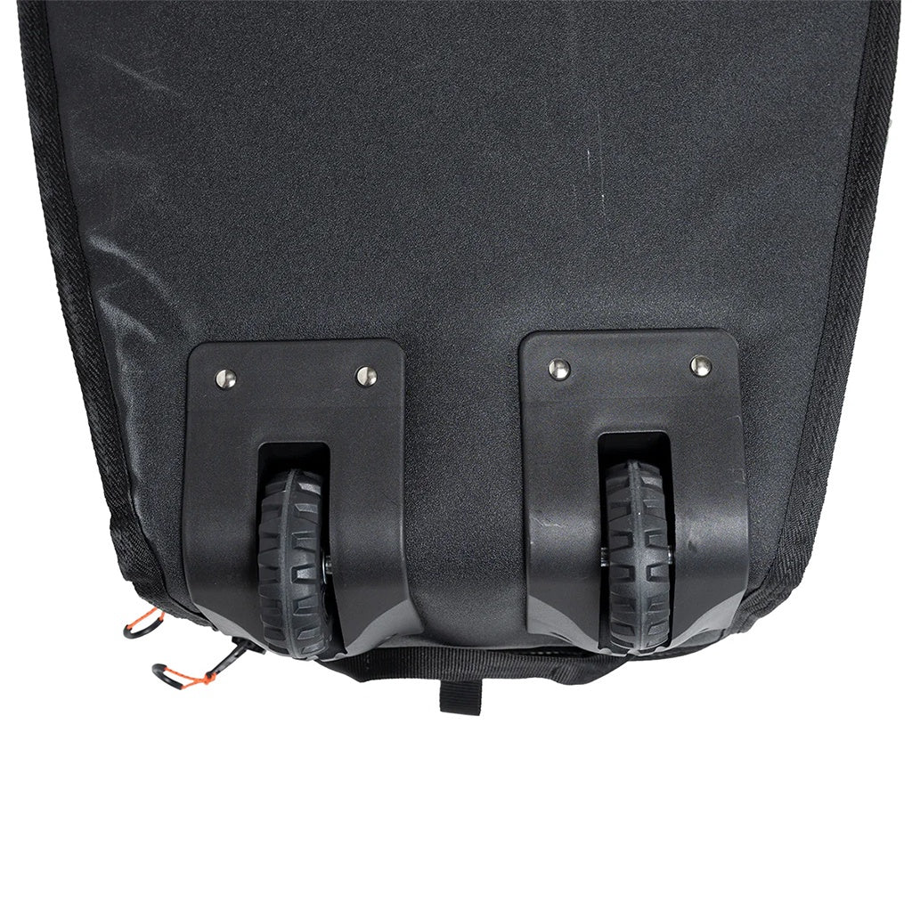 Designed with premium 600 Denier Polyester, 10mm PE foam construction and 5mm EVA high density nose and tail impact protection plates. Rugged all-terrain built-in wheels enables fast and efficient mobility across any surface with ease.