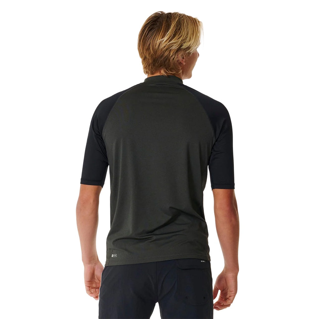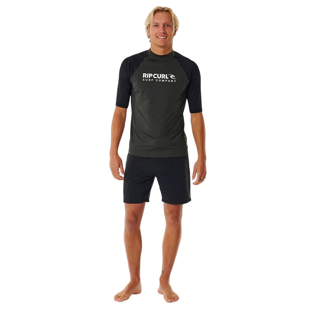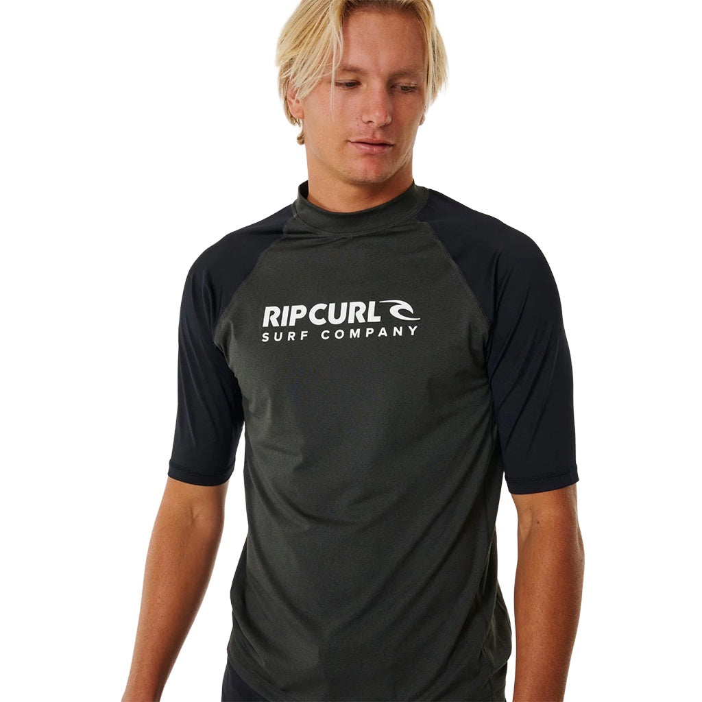 Rip Curl | Stack Brand Icon UPF Short Sleeve Rashguard. Black Marle